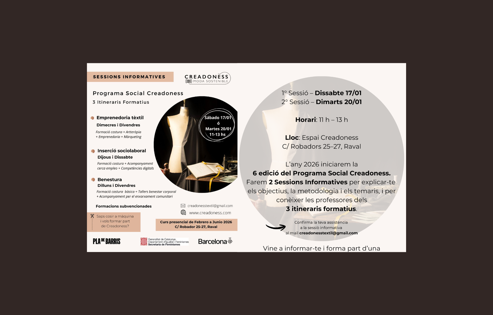 Creadoness es un proyecto ético de Moda Sostenible de Barcelona. Apostamos por la Sostenibilidad Social y Ambiental en el sector textil.