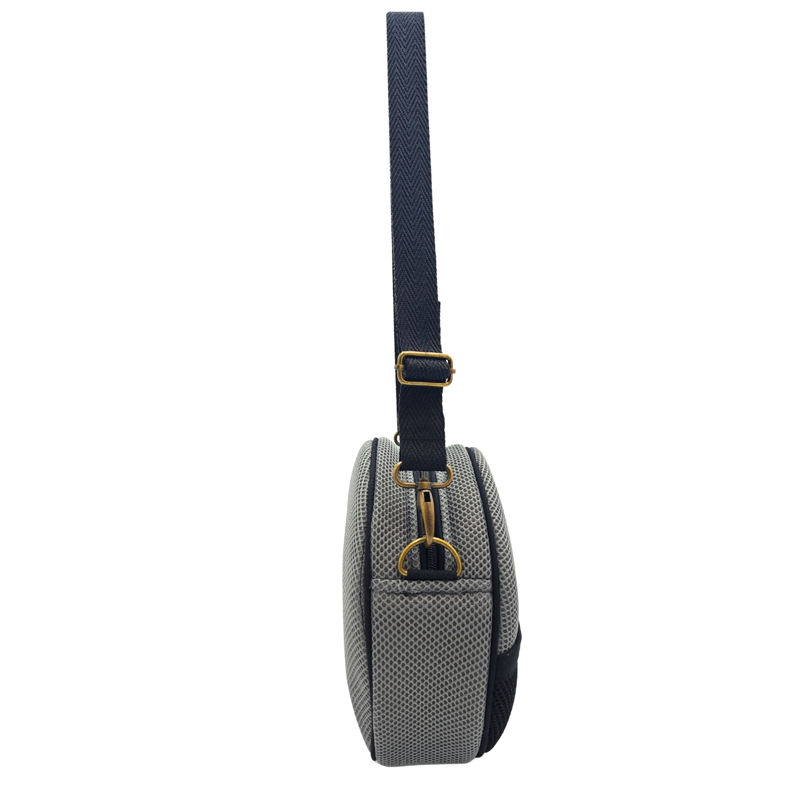 • Material: This Circular Bag is handmade by women that we trained in the Creadoness Social Program. It is a product made with 3D technical fabric and its interior is lined with recycled waterproof canvas.