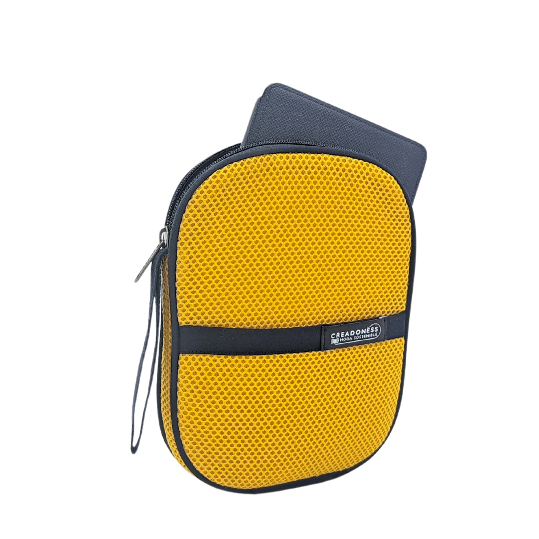 Esta funda para kindle está hecha a mano por mujeres que nosotras formamos en el Programa Social de Creadoness. Es un producto confeccionado con tejido técnico 3D, forrado con loneta impermeable reciclada, con cierre de cremallera de nylon y un asa de algodón como correa de mano.