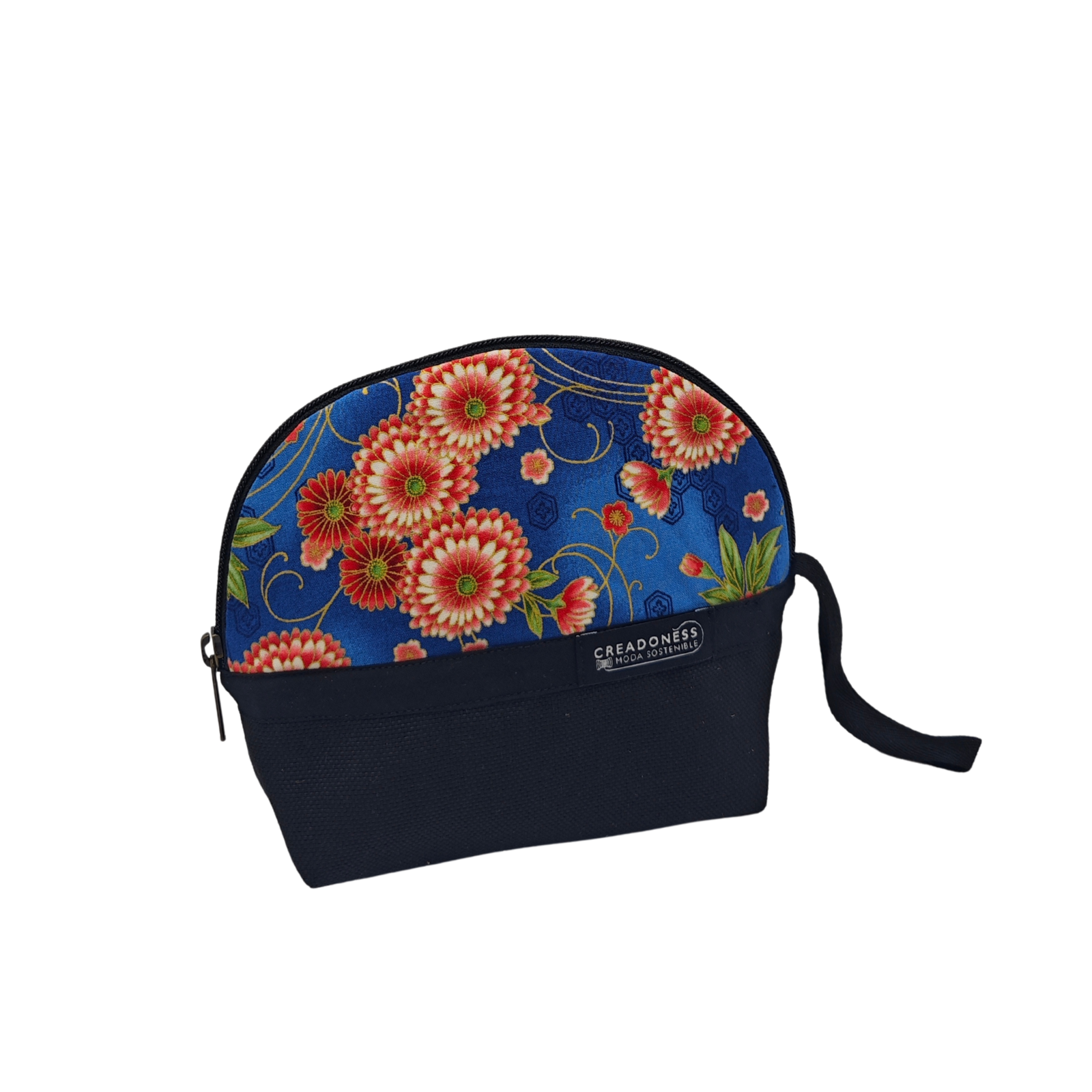 Material : This toiletry bag is handmade by the women we train in the Creadoness Social Program. It is made of soft, two-tone cotton canvas, which is stain-resistant. It is lined inside with black poplin.