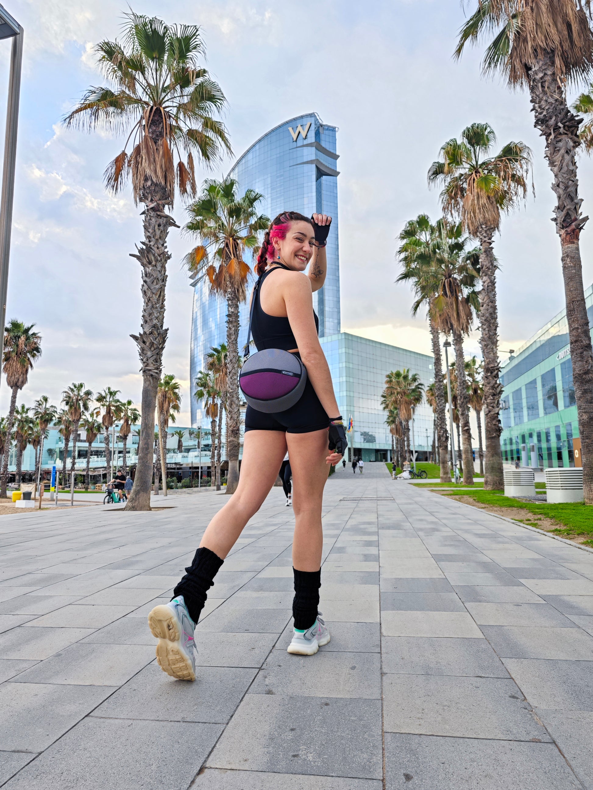 Este Bolso Circular está hecho a mano por mujeres que nosotras formamos en el Programa Social de Creadoness. Es un producto confeccionado con tejido técnico 3D y en su interior está forrado con loneta impermeable reciclada.
