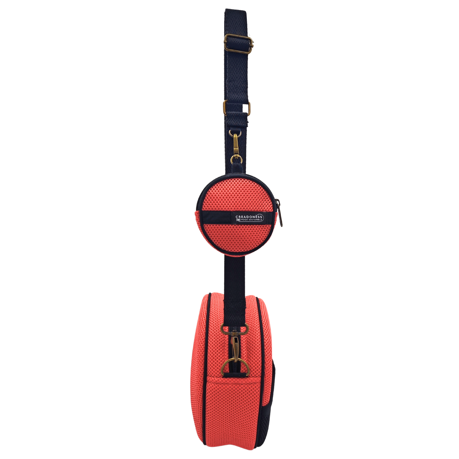 Este Bolso Circular está hecho a mano por mujeres que nosotras formamos en el Programa Social de Creadoness. Es un producto confeccionado con tejido técnico 3D y en su interior está forrado con loneta impermeable reciclada.