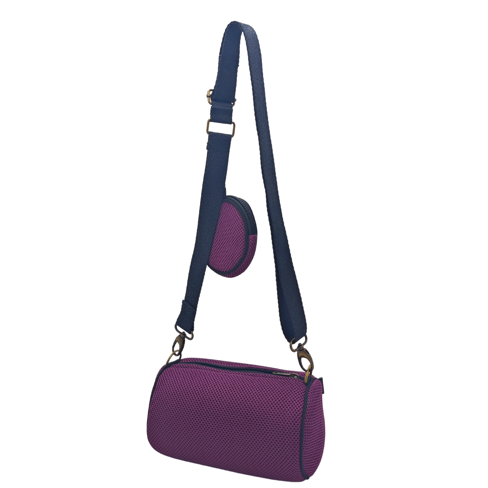 Este Mini Bolso está hecho a mano en Barcelona, España con tejido técnico 3D y en su interior está forrado con loneta impermeable reciclada.