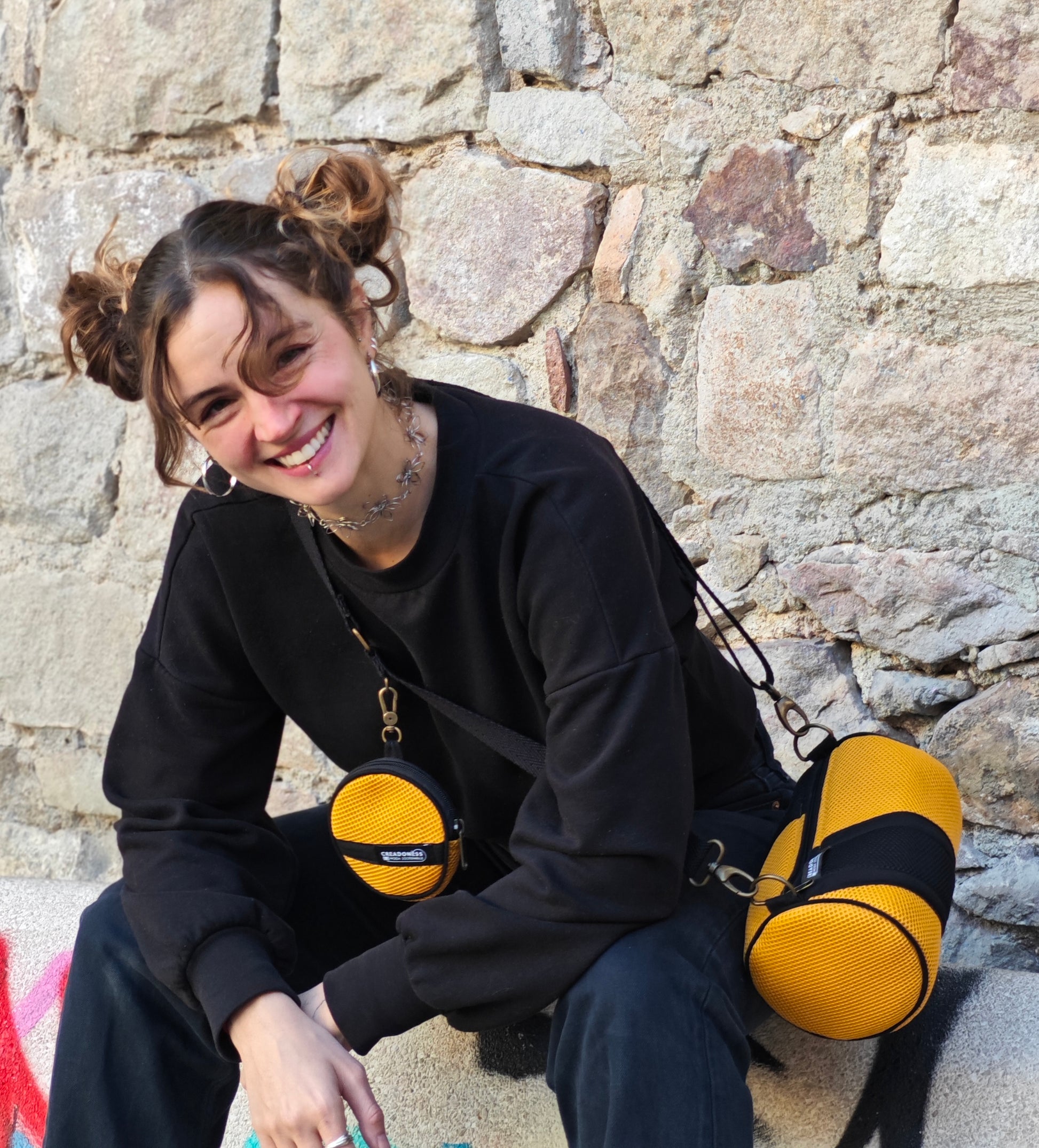 Este Mini Bolso está hecho a mano en Barcelona, España con tejido técnico 3D y en su interior está forrado con loneta impermeable reciclada.