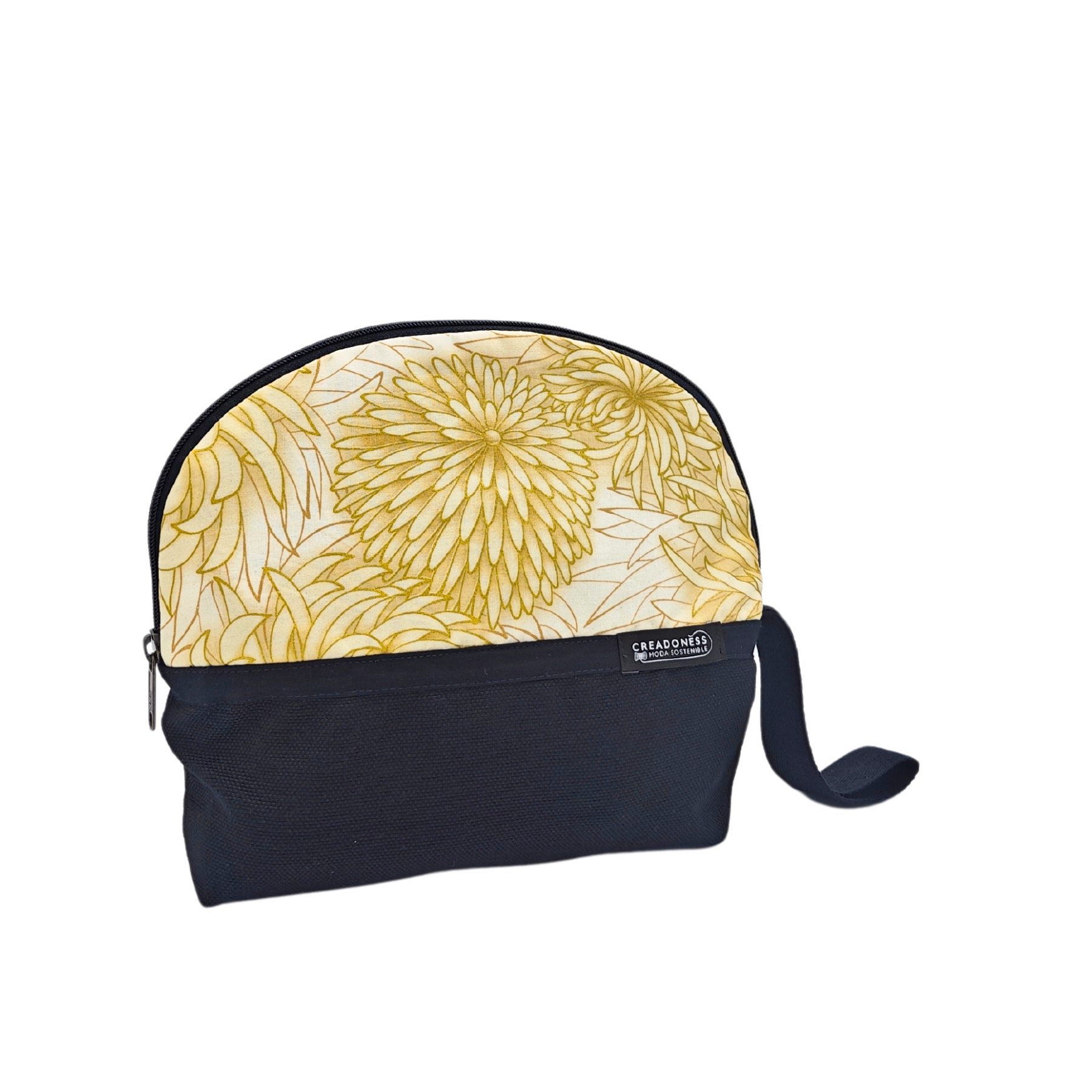 Este neceser grande está hecho a mano por las mujeres que nosotras formamos en el Programa Social de Creadoness. Está confeccionada con una suave loneta de algodón bicolor, con la característica de ser antimanchas. En su interior esta forrado con popelin negro.