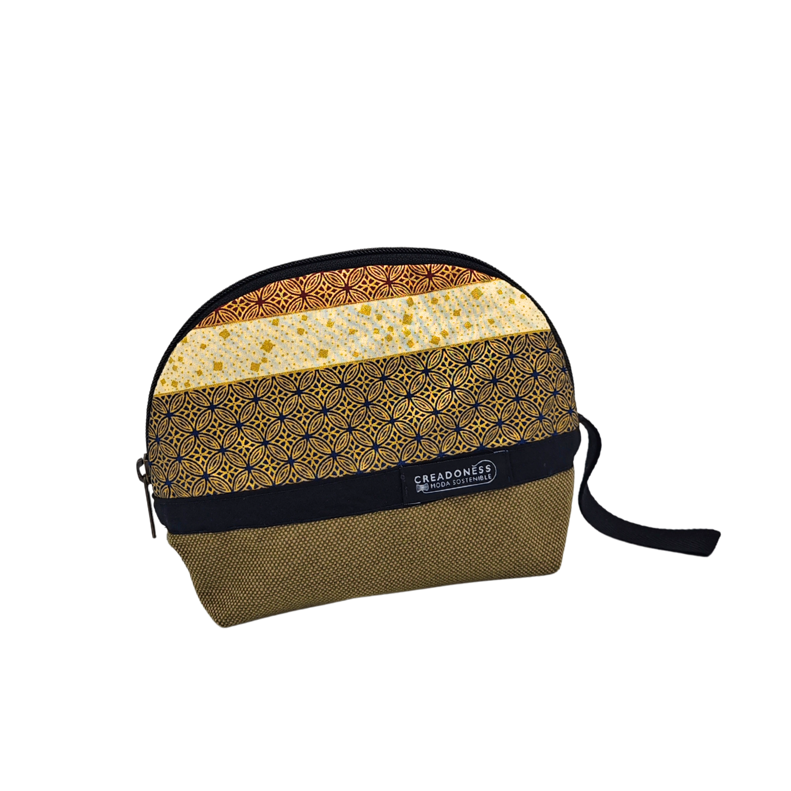 Este neceser pequeño está hecho a mano por las mujeres que nosotras formamos en el Programa Social de Creadoness. Está confeccionada con una suave loneta de algodón bicolor, con la característica de ser antimanchas. En su interior está forrado con popelín negro.