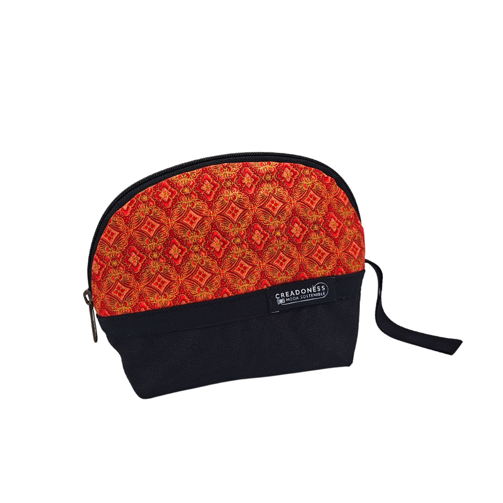 Este neceser pequeño está hecho a mano por las mujeres que nosotras formamos en el Programa Social de Creadoness. Está confeccionada con una suave loneta de algodón bicolor, con la característica de ser antimanchas. En su interior está forrado con popelín negro.