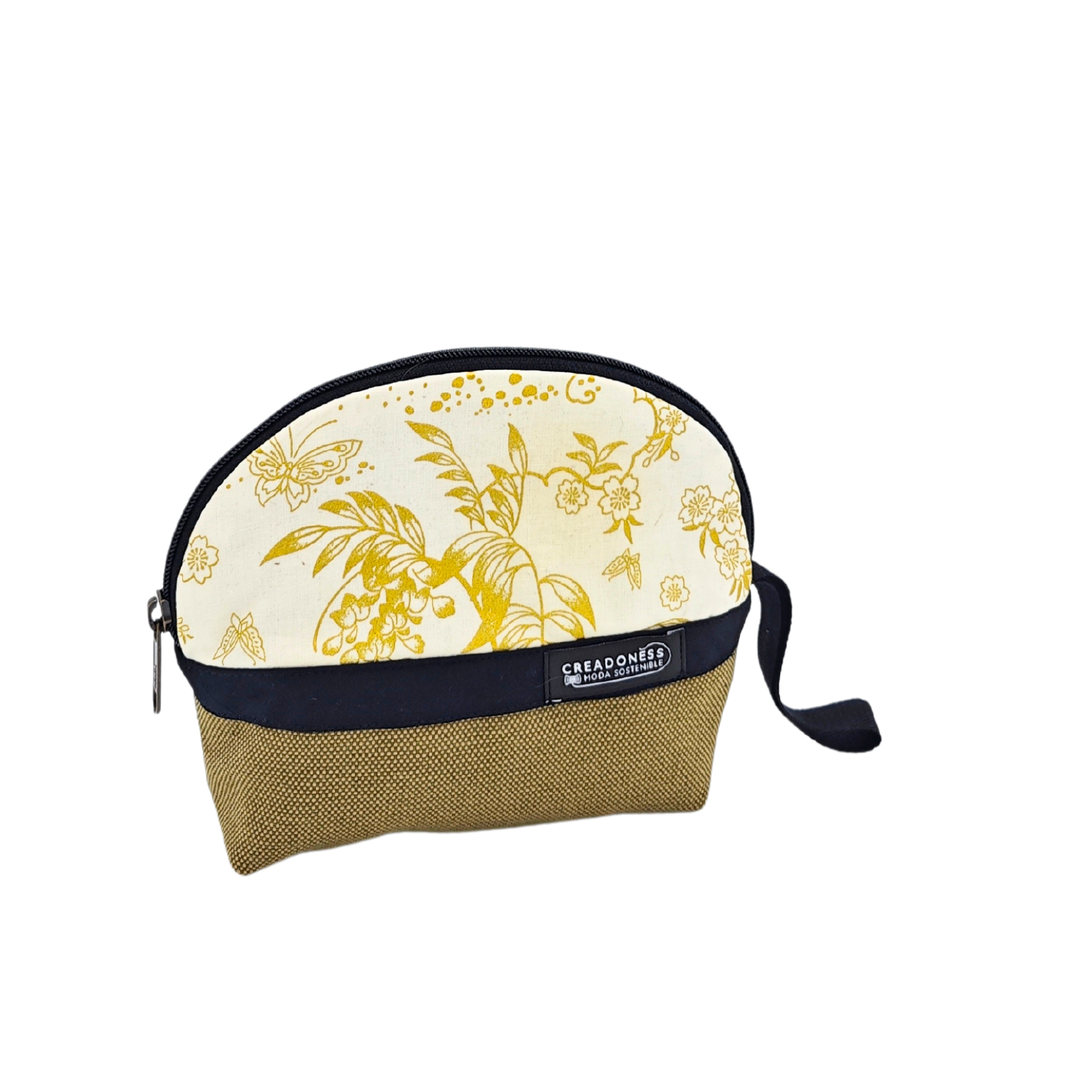 Este neceser pequeño necesario está hecho a mano por las mujeres que nosotras formamos en el Programa Social de Creadoness. Está confeccionada con una suave loneta de algodón bicolor, con la característica de ser antimanchas. En su interior está forrado con popelín negro.