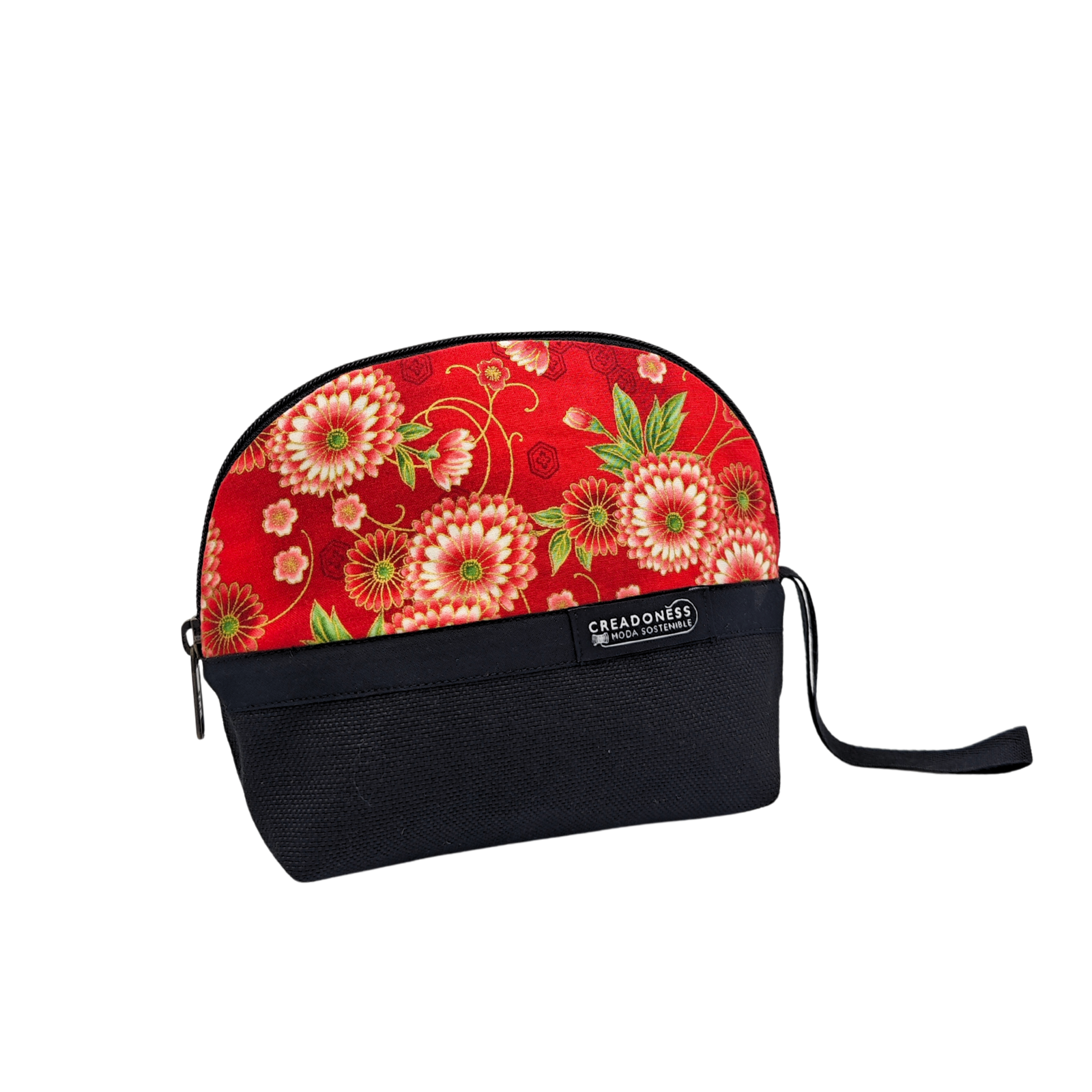 Este neceser pequeño está hecho a mano por las mujeres que nosotras formamos en el Programa Social de Creadoness. Está confeccionada con una suave loneta de algodón bicolor, con la característica de ser antimanchas. En su interior está forrado con popelín negro.
