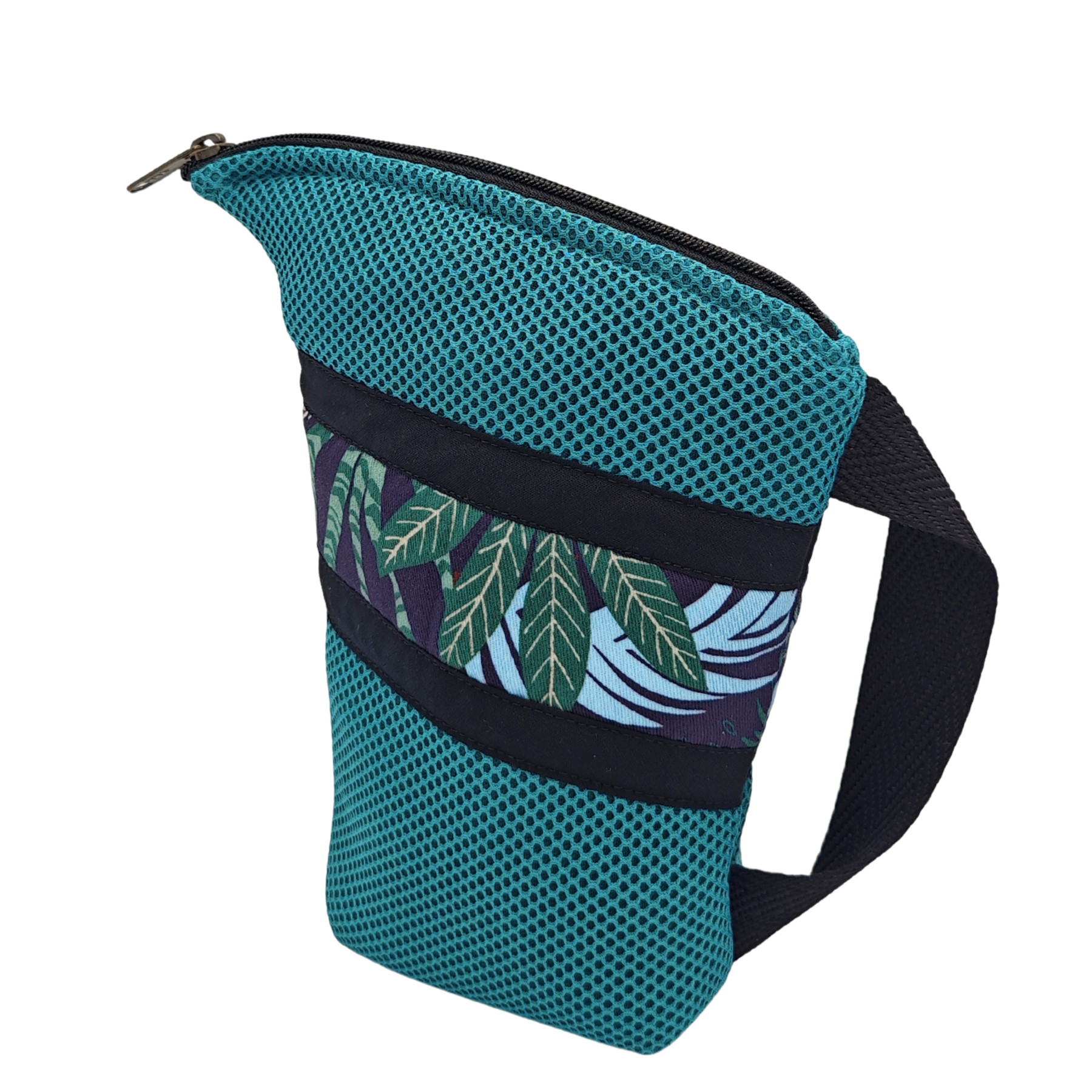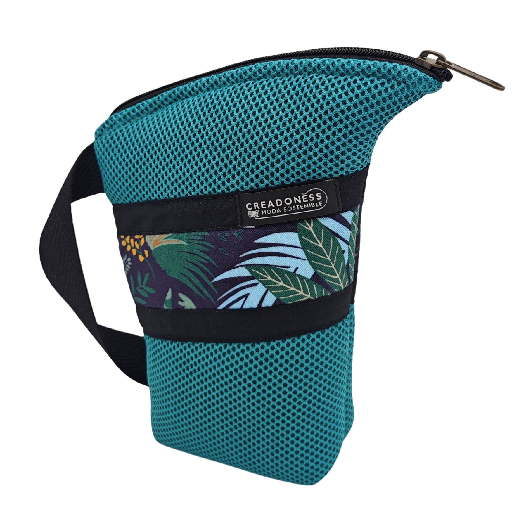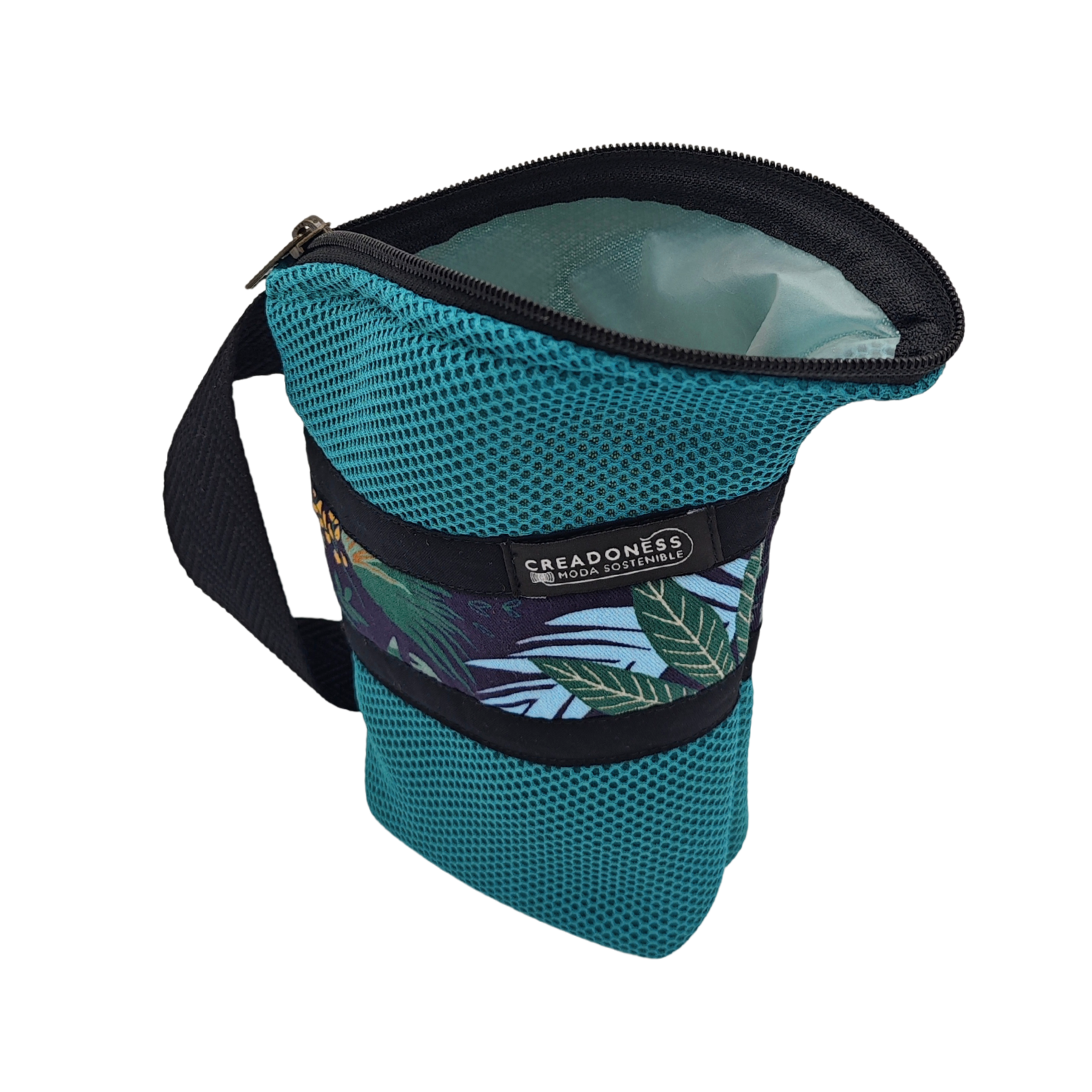 Esta Yerbera está hecha a mano en Barcelona con tejido técnico 3D. En el interior posee forro alimentario, apto para conservar alimentos secos. Es muy ligera y por su tipo de diseño posee un pico vertedor.