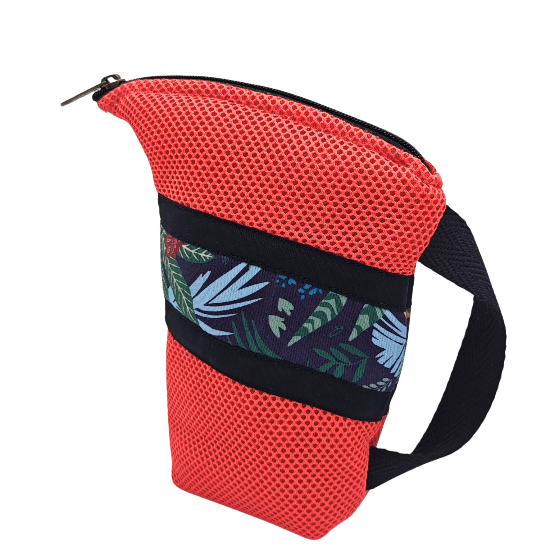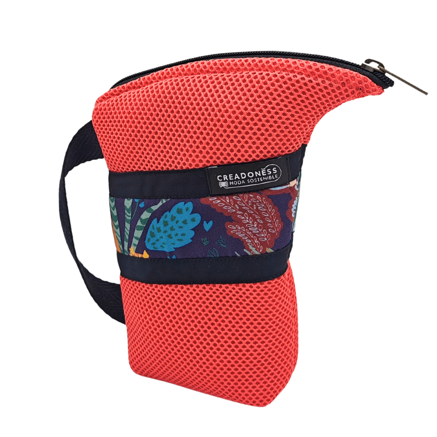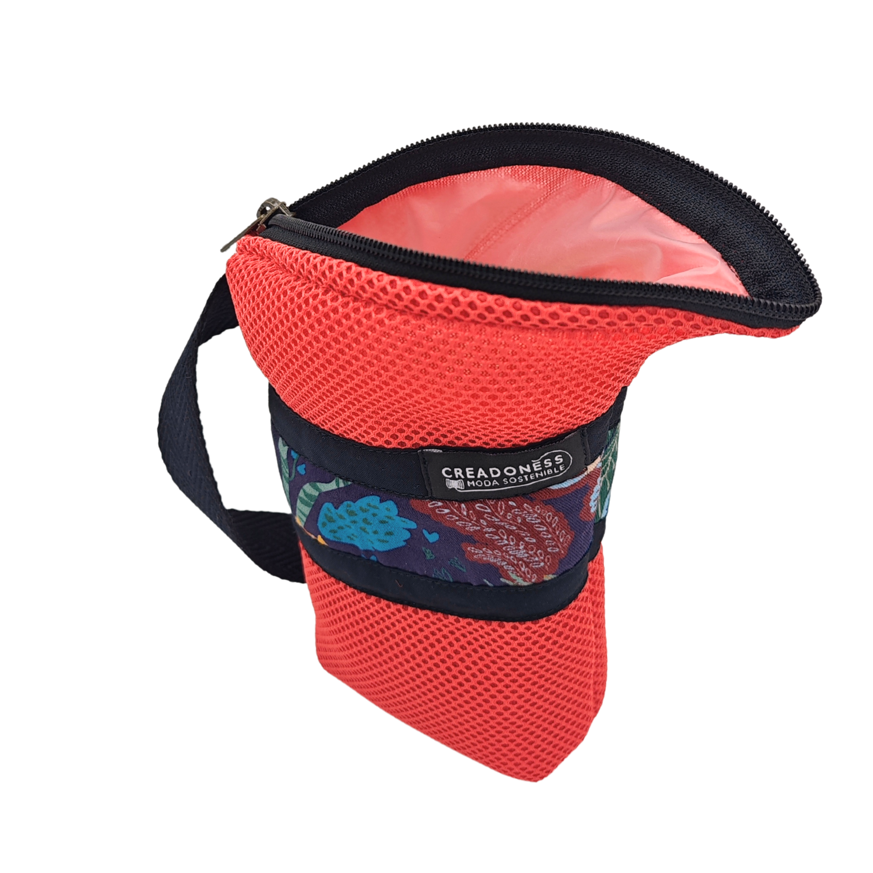 Esta Yerbera está hecha a mano en Barcelona con tejido técnico 3D. En el interior posee forro alimentario, apto para conservar alimentos secos. Es muy ligera y por su tipo de diseño posee un pico vertedor.